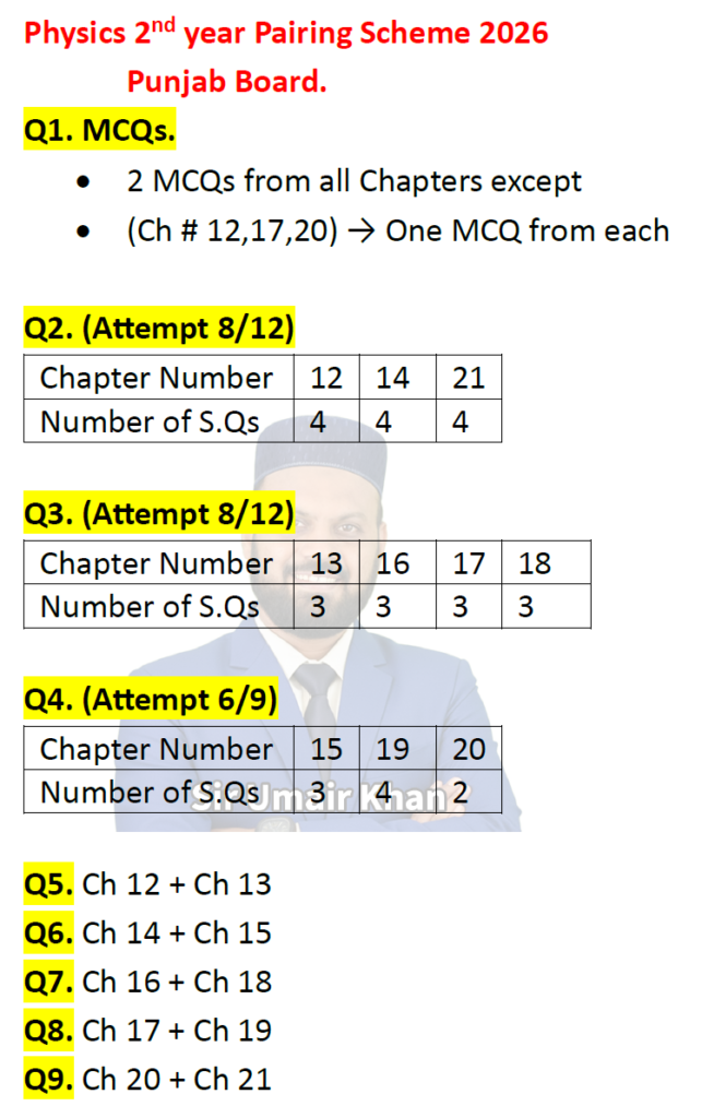 12th Class Physics Pairing Scheme for Punjab Boards π