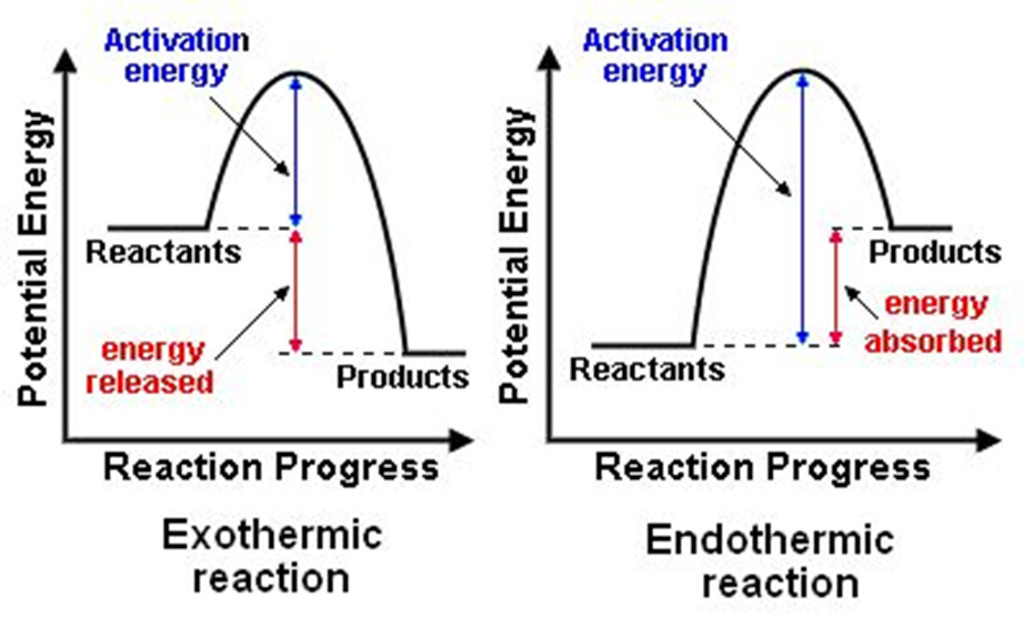 Q.25 Give energy diagrams for endothermic and exothermic reactions.