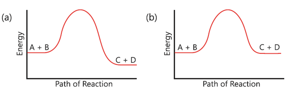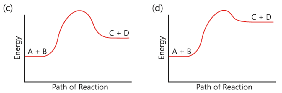(a) (Reaction profile with a high peak and products lower than reactants)