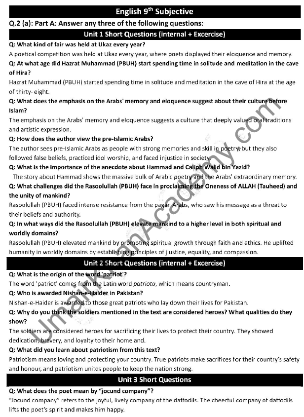 5. Solved Short Questions (Class 9 English Guess)